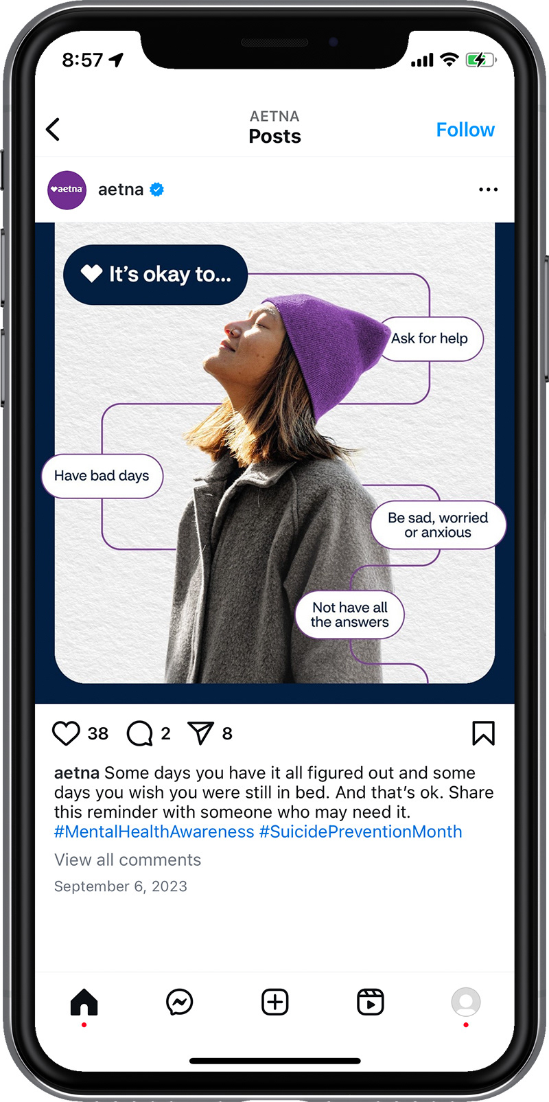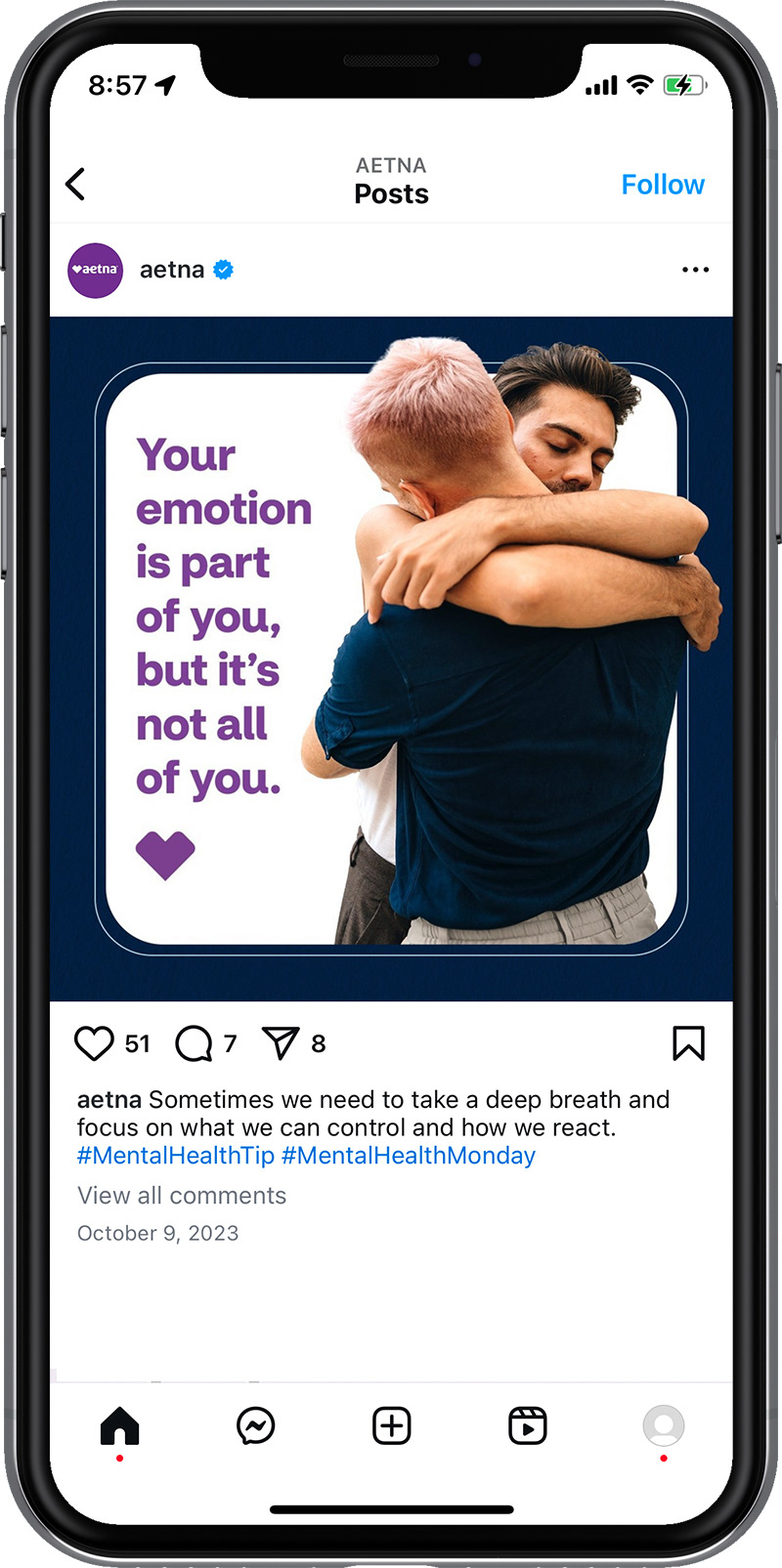 Organic brand social content for Aetna's Instagram page.