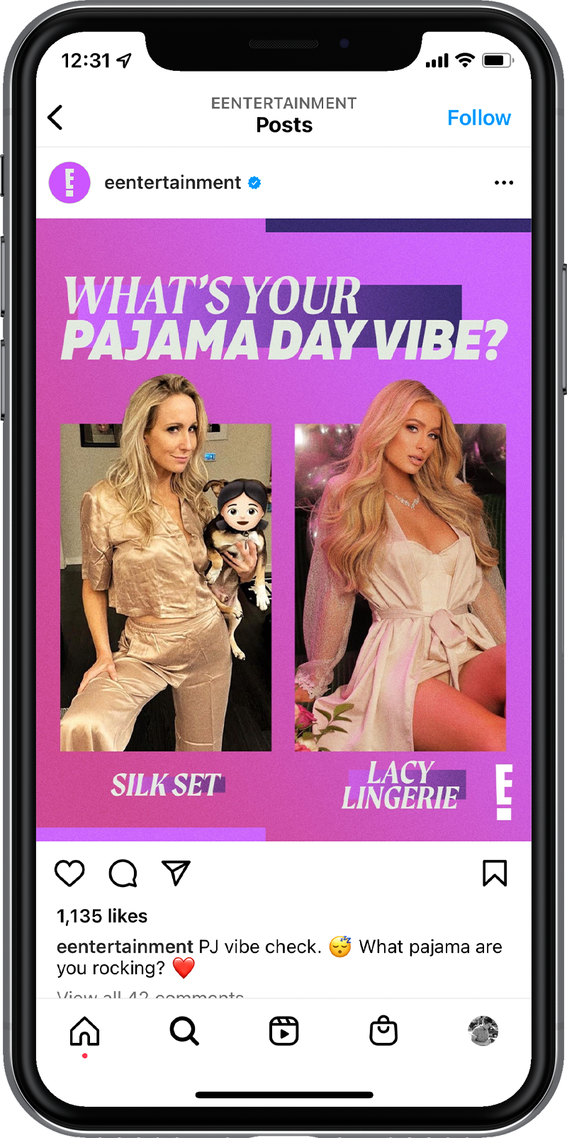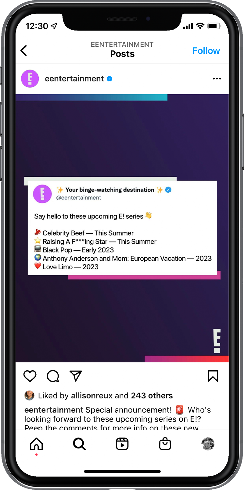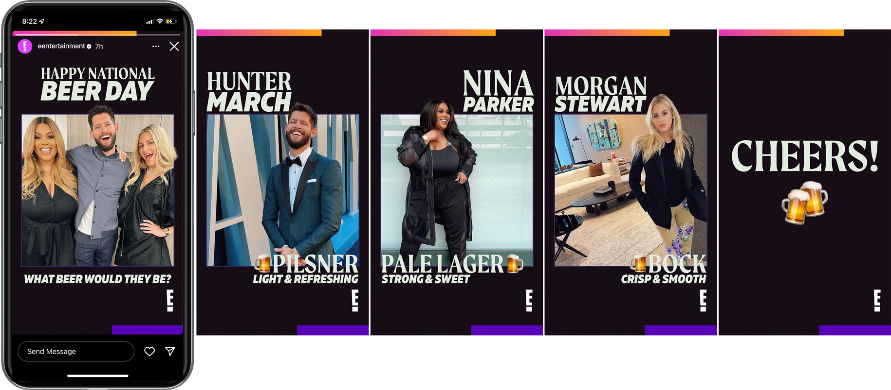 Sample of brand organic social assets for E!'s social pages.