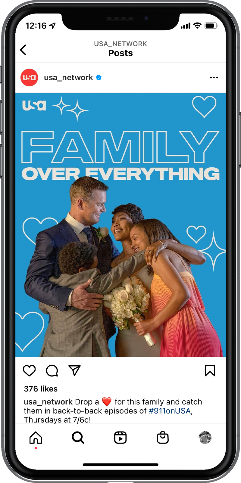 Sample of brand organic social assets for USA Network's social pages.